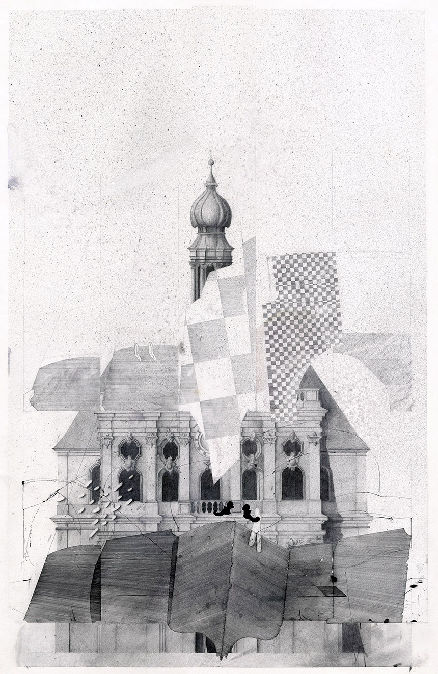 'Antipodal Sculpture' . 480x760mm . pencil, ink and collage . 1980 (Print Reference No. 57)